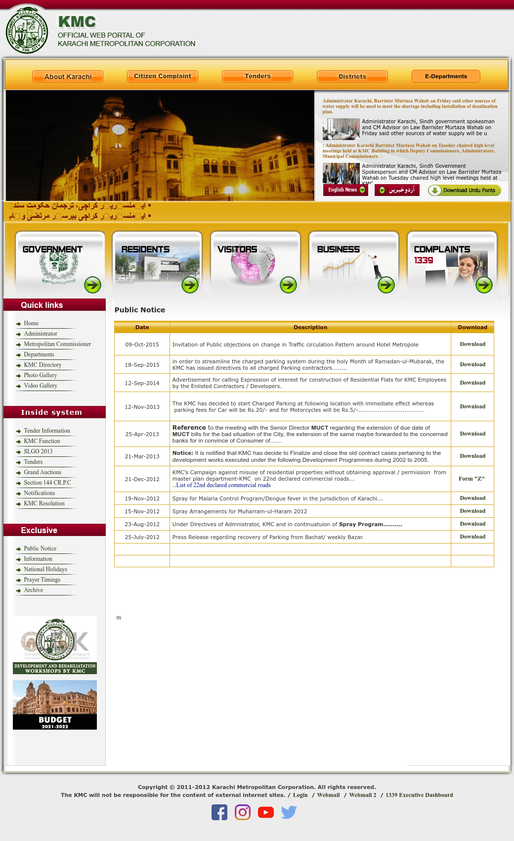 خطیر رقم سے تیار کردہ کے ایم سی کی اس ناقص ویب سائٹ پر ادارے کے شعبوں سے متعلق کے سطحی معلوما ت دی گئی ہیں جس سے ویب سائٹ کی ٹیم کی ناقص کارکردگی کا اندازہ لگایا جاسکتا ہے۔